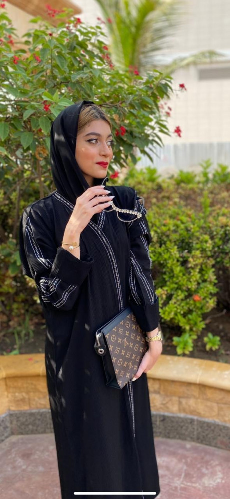 قماش راما و العبايه ازرار و يوجد معها طرحه ساده