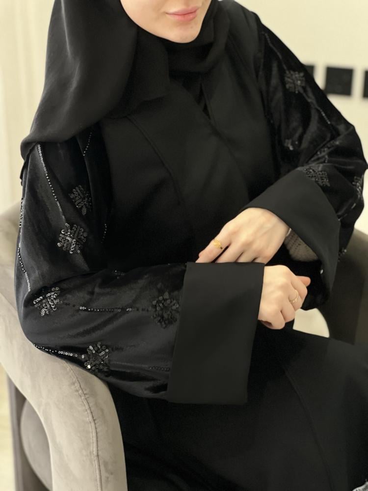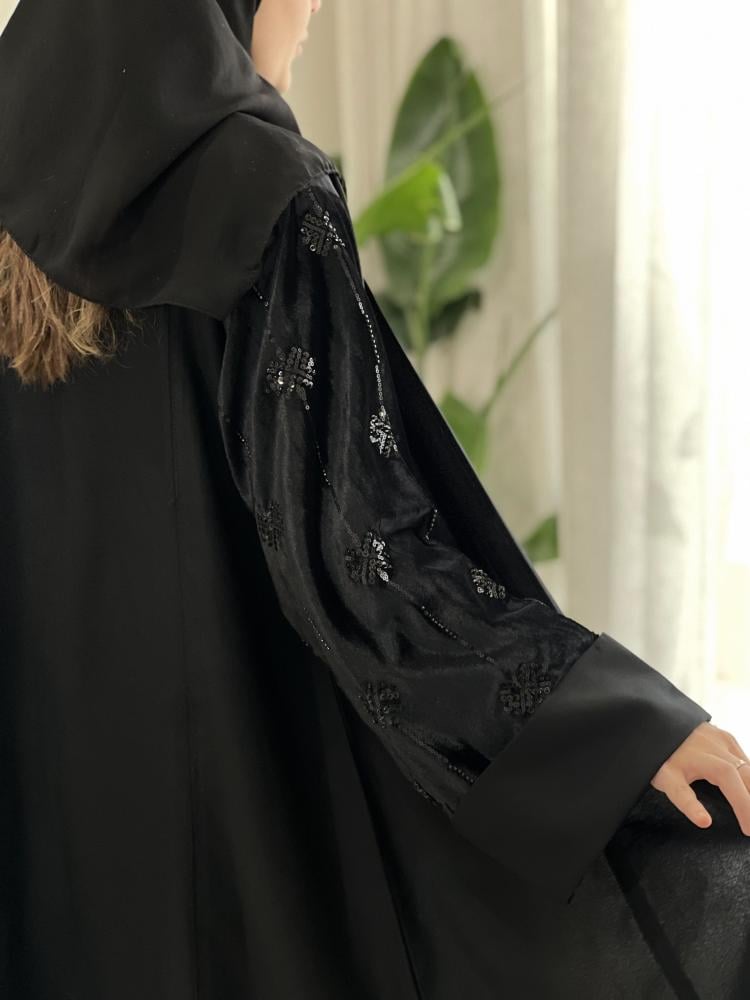 • عباية بلون اسود جذاب يضف لمسة راقية.